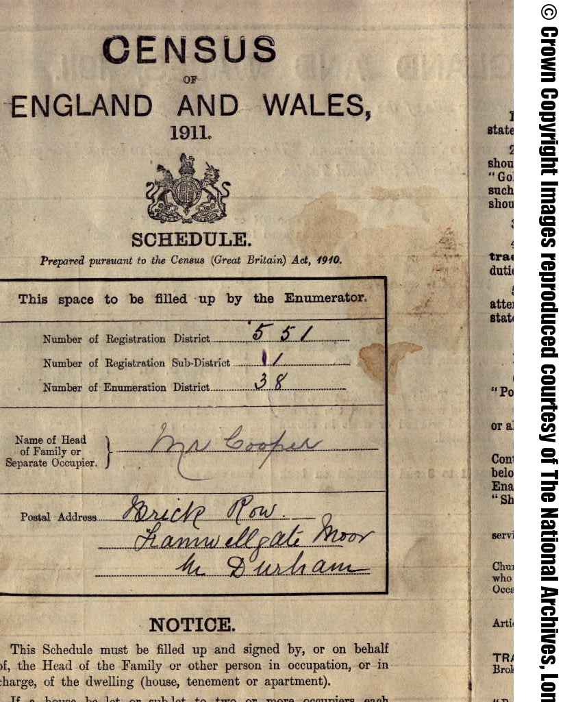 | Gladys Cowper | Daughter | under 1 month | Single | Durham, Framwellgate Moor | |||||||||||