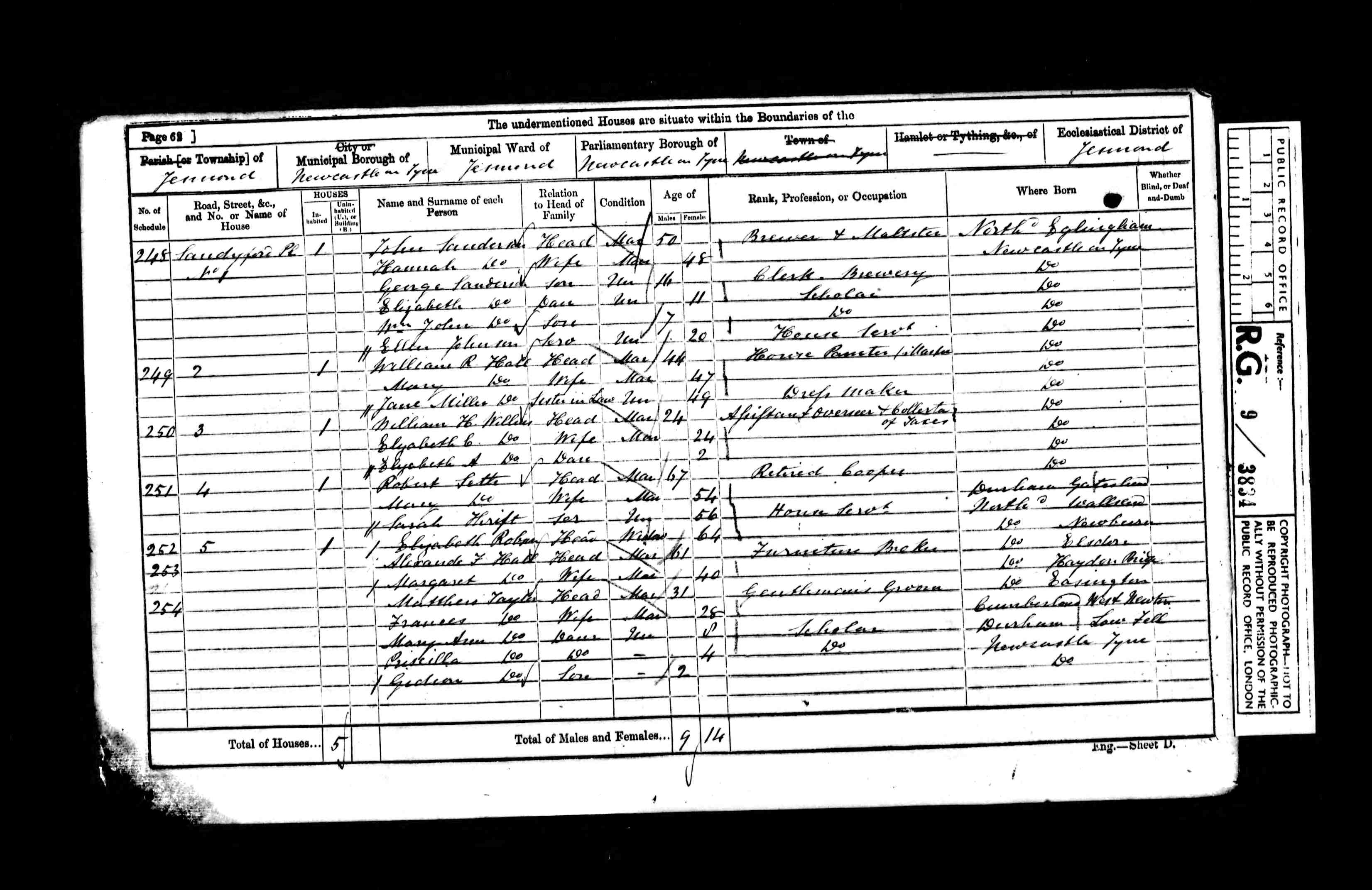| Elizabeth Robson | Head | Widow | 64 | Northumberland Newburn | |||