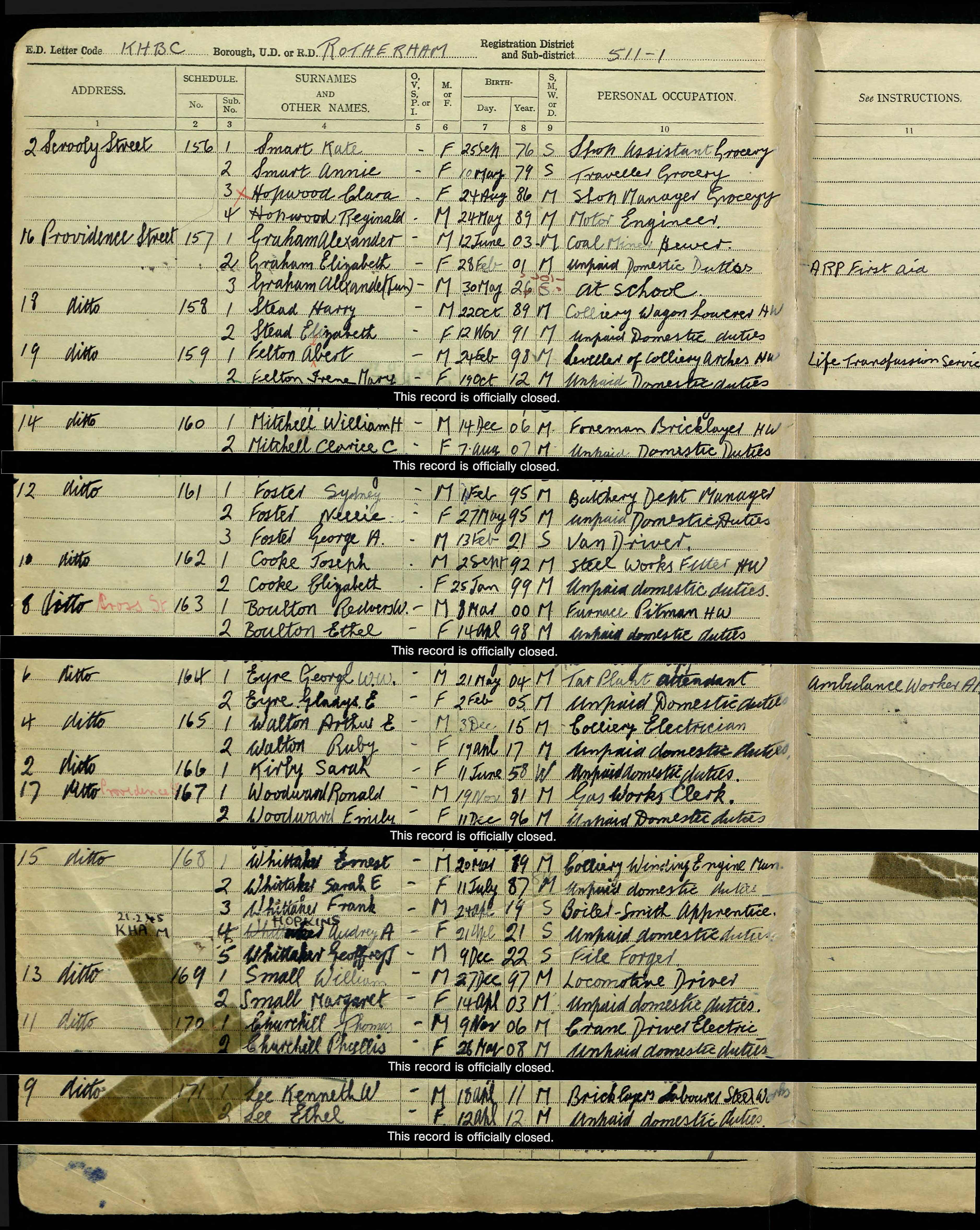 | 19 Providence Street | 159 | 1 | Felton Albert | M | 24 Feb | 98 | M | Leveller of Colliery Arches HW | |